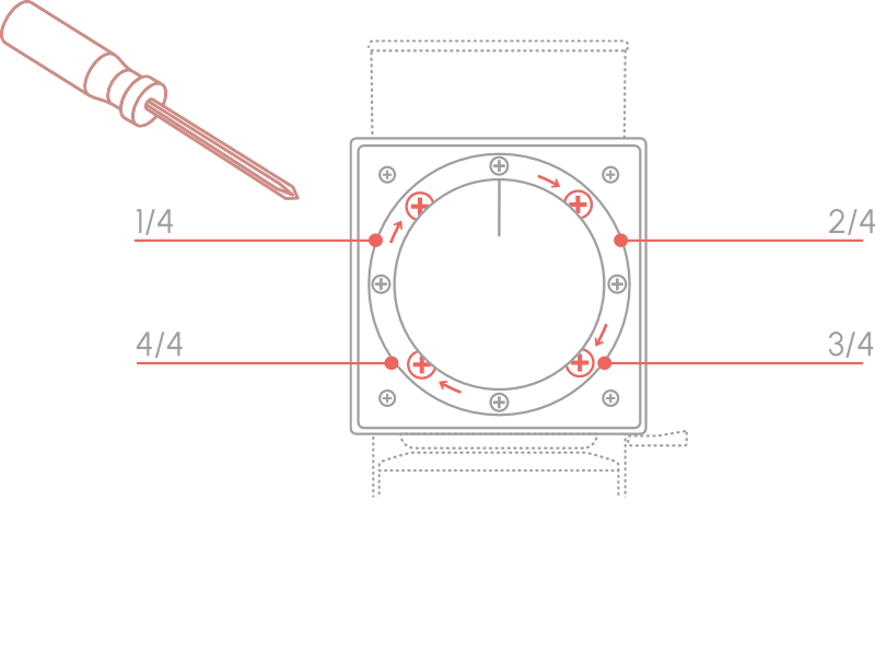 • Postupně uvolněte 4 šrouby, které drží otočný ovládač nastavení hrubosti